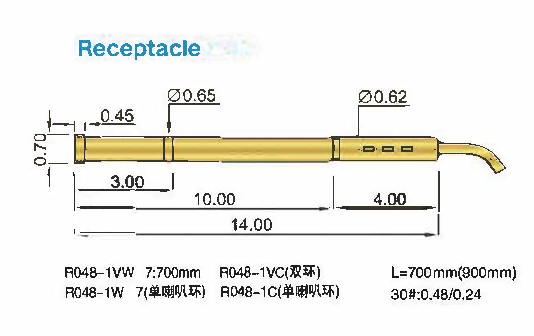 Προσαρμοσμένο ανιχνευτή δοκιμής ελαστικών από χαλκό με βαρέλι από ανοξείδωτο χάλυβα P048 για δοκιμή σε κυκλώματα (ICT)